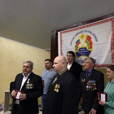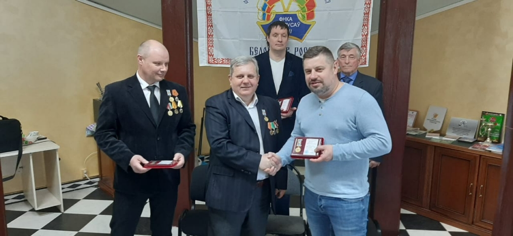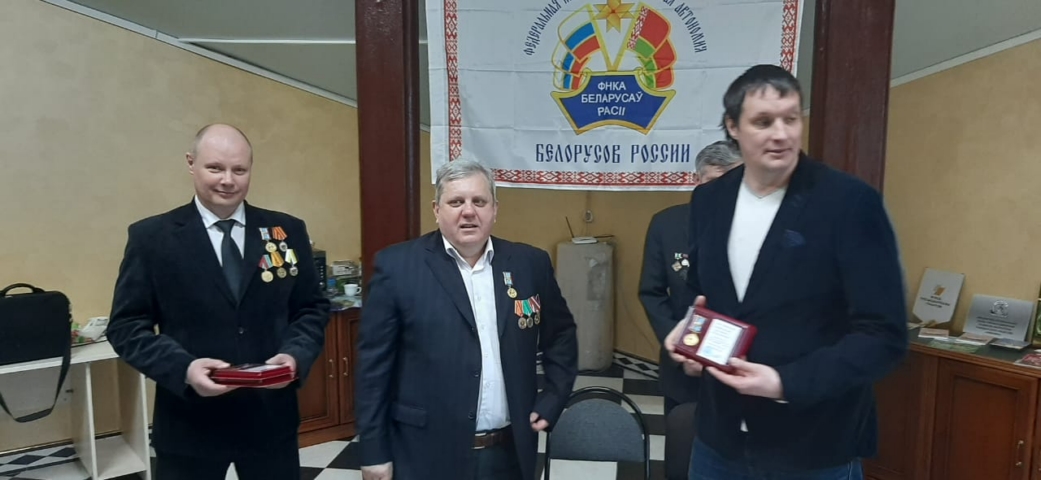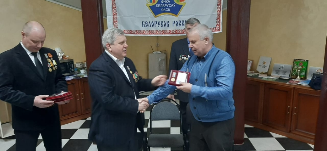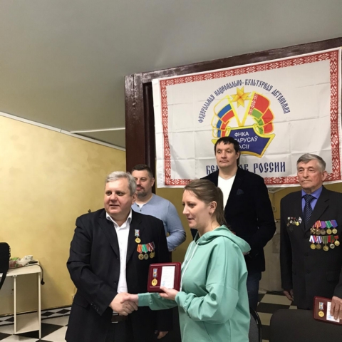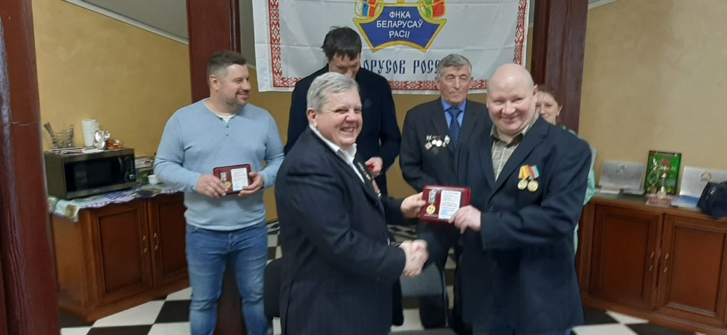 Кроме общественного признания наши проекты были поддержаны Фондом президентских грантов, Ассамблеей народов России и ФНКА Белорусов России. Заместитель председателя ФНКА Кривко Сергей Ростиславович от имени общероссийской организации наградил медалями "За заслуги" Долусова Л.М., Хатанцева Г.Н , Зуеву Е.А., Козицкого С.В., Коренева В.Е. и Семчева А.С.